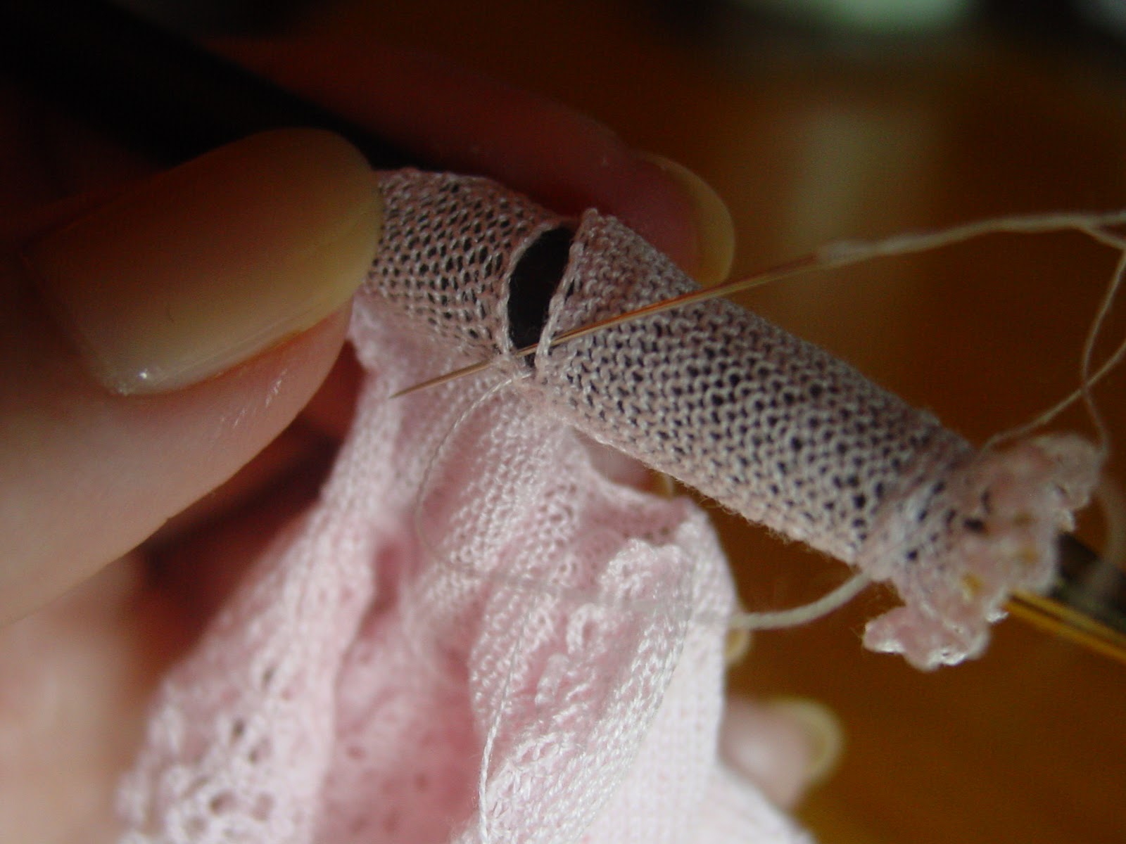 The next photograph shows how I sew sleeves onto my garments, there are many items in a home that can be used to insert into a sleeve.